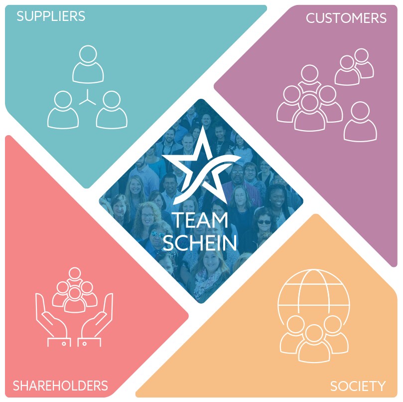 At Henry Schein, we have long understood that our business success is directly linked to our success at creating shared value with and for the key stakeholders that make up our Mosaic of Success — our Team Schein Members, customers, suppliers, stockholders, and society. By working alongside these stakeholders to create economic, environmental, and social benefit, we forge the trusted relationships that drive our Company’s sustained growth, amplify our collective strengths, and bring to life our vision of making the world healthier, together. Caring — for the health care providers we serve, the suppliers with whom we partner, the communities where we live and work, our Team Schein Members (TSMs), our stockholders, and the planet we share — is a key priority. The power of our approach is demonstrated by the success of our recently completed BOLD+1 2022−2024 Strategic Plan, which exceeded 2024 targets for advancing our high-growth, high-margin businesses. For more specifics on our BOLD+1 accomplishments and 2024 financial results, see our 2024 Annual Report. As we launch our renewed BOLD+1 2025−2027 Strategic Plan, engaging as a leading corporate citizen with our stakeholders to create shared value — the “+1” — remains core to our business strategy of strengthening our business operations, enhancing market competitiveness, and delivering long-term growth. Our commitment to environmental responsibility is reflected in several key initiatives that are already making an impact. This year, we received validation of emissions reduction targets from the Science-Based Targets initiative and are building a transition plan to reach net-zero by 2050. Embedding environmental responsibility throughout our global supply chain is aimed at advancing our business’s long-term operational efficiency goals and energy diversification, which is intended to reduce costs and promote sustainability, so we can better meet the evolving needs of our customers and communities for generations to come. We also continue to invest in and strengthen our greatest asset — Team Schein. Teams with diverse backgrounds, perspectives, and ideas foster innovative solutions and more effective problem-solving, enabling us to adapt, grow, and compete in a rapidly evolving marketplace. Guided by our values of Community, Caring, and Career, we’re investing in a culture of wellness, inclusivity, and collaboration — through initiatives like our 2024 Banish Burnout campaign, Culture Ambassador Program, and the launch of our seventh Team Schein-led Employee Resource Group. These and other initiatives, including additions to our learning and development programs and the launch of our new skills-based Core Leadership Capabilities, expand opportunities for personal and professional growth and position our TSMs to be responsive, innovative leaders. In this year’s CARES report, we are pleased to provide an update on these efforts and more to deliver on the “+1” of our strategic plan. From driving greater sustainability in our facilities and supply chains, to further engaging and developing Team Schein, to ensuring the highest ethical standards throughout our Company, we highlight the ways in which we continue to create shared value with our constituencies especially to meet customer demands and advance our mission to help health care professionals deliver high quality care while making the world healthier. Our many accomplishments this year would not have been possible without the dedication and hard work of Team Schein. By continuing to work together creatively, collaboratively, and with a shared understanding of our strategy and goals, we will continue to care for our business, our stakeholders, and the world.
